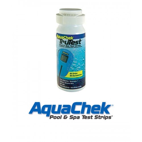 Paquete de 50 Tiras para lector digital Aquacheck TrueTest. El probador AquaChek TruTest es un lector digital de tiras analíticas para la medición de cloro libre/bromo, pH y alcalinidad total que combina la sencillez y precisión de las tiras analíticas con la tecnología digital. Solo se tiene que sumergir una tira analítica en la piscina o spa e introducirla en el lector para obtener los resultados digitales rápidamente y con precisión